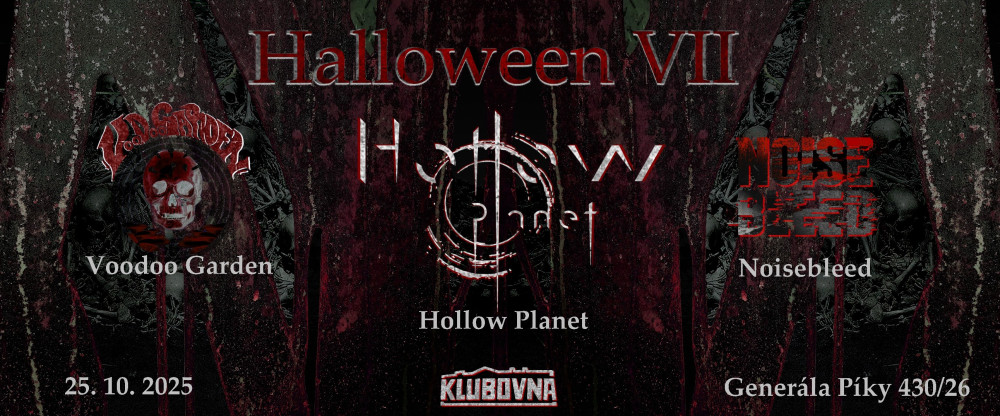 Další ročník skvělé halloweenské párty v Klubovně spolu s Noisebleed a Voodoo Garden.